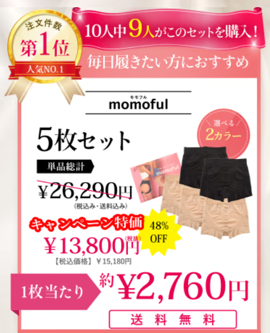 モモフルでは、5枚セットがキャンペーン特価になり、かなり割引になります。
